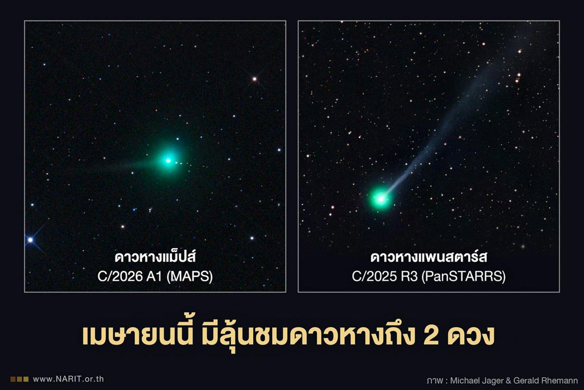 สำหรับประชาชนและนักสมัครเล่นที่รอชมในวันที่ 27 เมษายนนี้ จะสามารถสังเกตเห็นหางของดาวหางแยกออกเป็นสองส่วนอย่างชัดเจน ได้แก่ “หางฝุ่น” (Dust Tail) ที่สยายโค้งตามแนวโคจร และ “หางไอออน” (Ion Tail) ที่ชี้ตรงข้ามกับดวงอาทิตย์เสมอตามแรงเป่าของลมสุริยะ (Solar Wind) ☀️