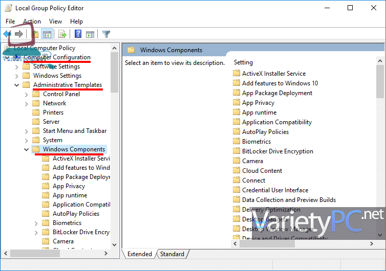 ที่เมนูด้านซ้ายเข้าไปที่ Computer Configuration -> Administrative Templates -> Windows Components