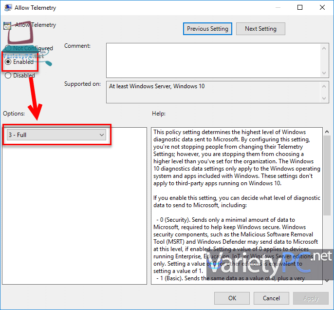 ที่พาเนลด้านขวาดับเบิ้ลคลิกเปิดหัวข้อ Allow Telemetry ขึ้นมา